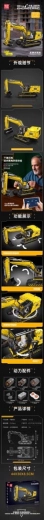 Ta wysokiej jakości konstrukcyjna zabawka zachwyci wszystkich fanów techniki. Z elementów zbudujesz szczegółową koparkę o solidnej, wytrzymałej konstrukcji z tworzywa, która porusza się do przodu i do tyłu, skręca w prawo i w lewo, a dzięki gumowym gąsienicom radzi sobie na różnych nawierzchniach. Sterowanie odbywa się w trybie dualnym – za pomocą pilota 2,4 GHz lub aplikacji mobilnej (kod QR znajduje się na opakowaniu). W aplikacji można dodatkowo programować ruchy i tworzyć własne sekwencje.