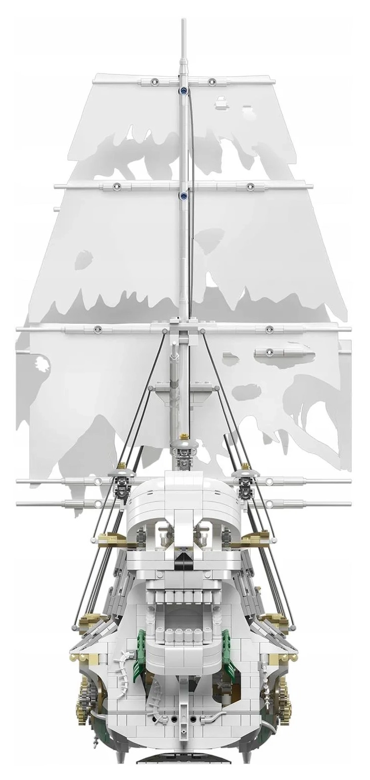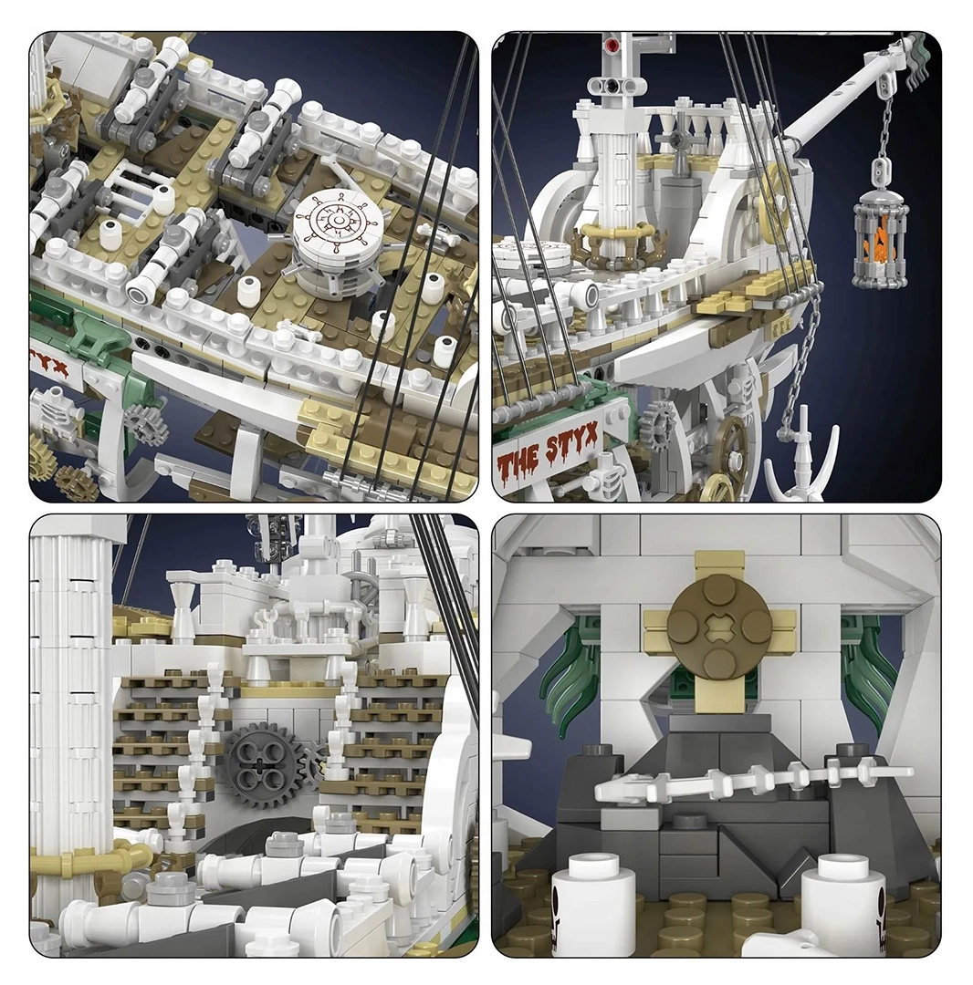 Stwórz własny legendarny okręt – piracki statek Duch, który zachwyca dopracowanymi elementami i imponującymi rozmiarami. Model wyróżnia się ciemnym, majestatycznym wyglądem oraz mnóstwem realistycznych detali, podkreślających klimat pirackiego świata.