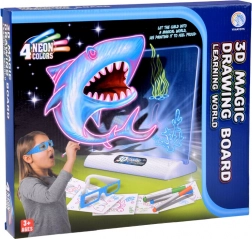 Magiczna 3D tablica do rysowania z podświetleniem LED zamienia dziecięce prace w neonowe obrazy z efektem 3D. Dzięki fluorescencyjnym markerom, okularom 3D i wielokrotnie używanej przejrzystej planszy to świetny wybór do rozwijania kreatywności, wyobraźni i motoryki małej u dzieci od 3 lat.