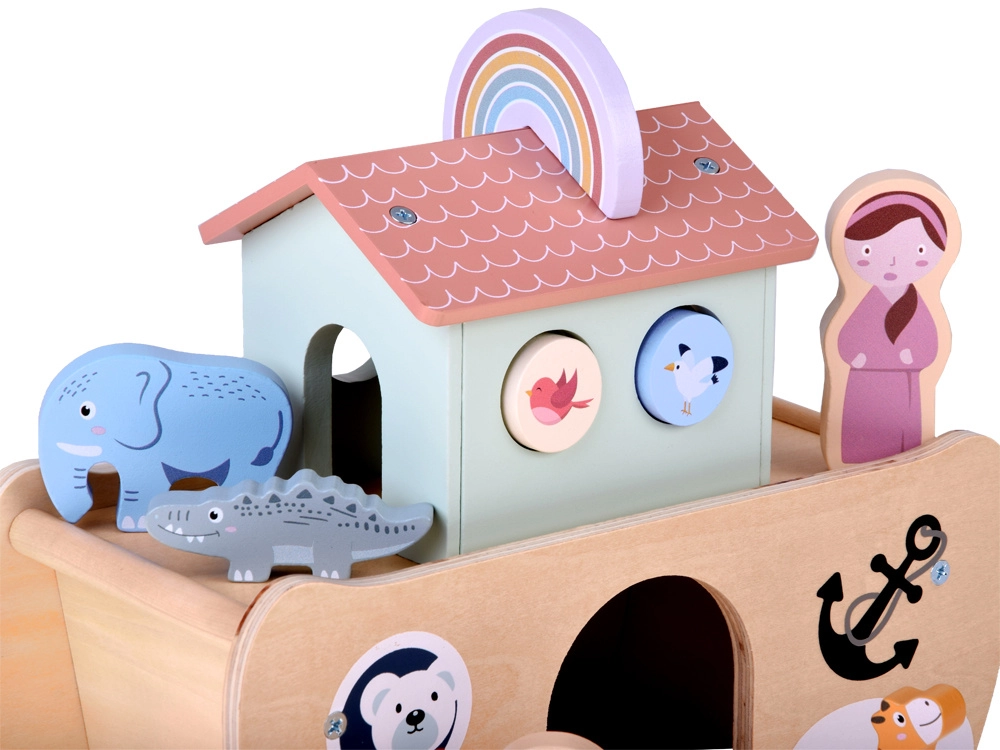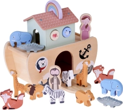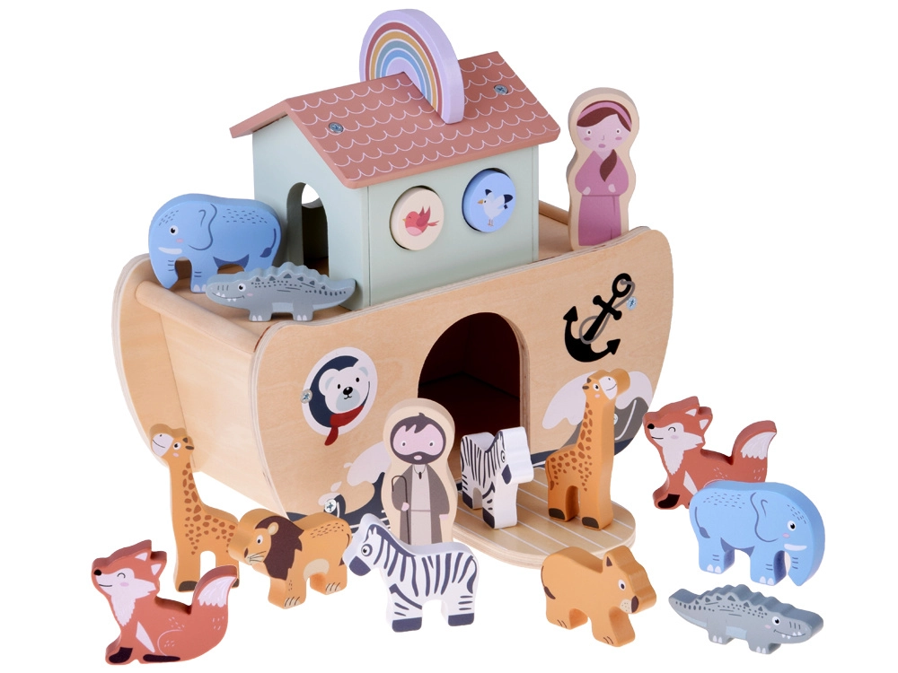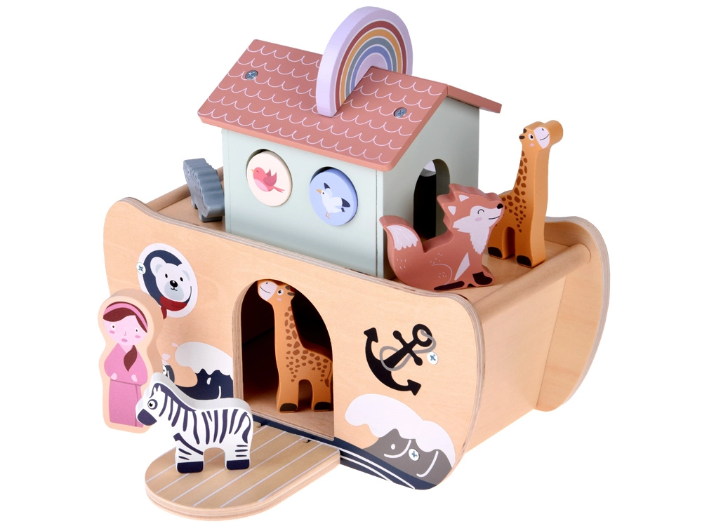 Odkryj urok klasycznej zabawki: drewniana Arka Noego z kolorowymi figurkami zwierząt oraz postaciami Noego i jego żony. Wspiera kreatywną zabawę, naukę zwierząt i kolorów, sortowanie i liczenie oraz rozwija małą motorykę. Bezpieczne, gładkie drewno i nietoksyczne farby zapewniają beztroską zabawę, a figurki po grze można schować do wnętrza arki.
