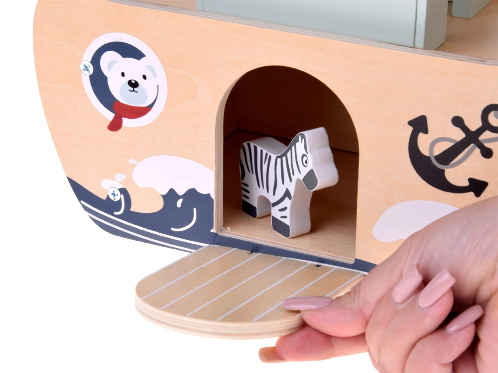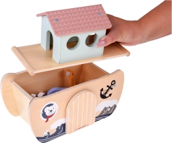 Gładkie drewno, nietoksyczne farby i zdejmowana górna część dla szybkiego schowania wszystkich elementów bezpośrednio do łodzi. Praktyczne i bezpieczne do codziennej zabawy.