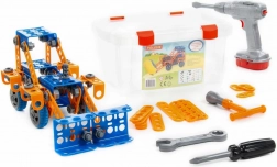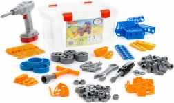 Zestaw konstrukcyjny Wynalazca zawiera 142 elementy w praktycznym pudełku z zatrzaskami. Dzięki dołączonym narzędziom – wkrętarce akumulatorowej, kluczowi imbusowemu, śrubokrętowi z wymiennymi końcówkami oraz kluczowi płaskiemu – dzieci łatwo zbudują wiatrak/młyn lub różne pojazdy.
