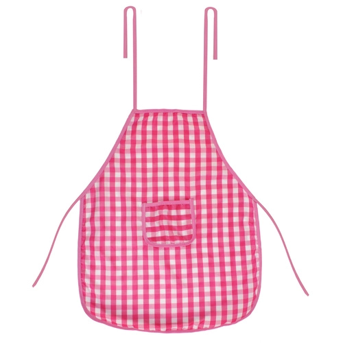 Lekka różowo‑biała kratka z wiązaniem na szyi i w pasie zapewnia wygodne dopasowanie. Praktyczna kieszonka utrzyma pod ręką drobne akcesoria kuchenne.