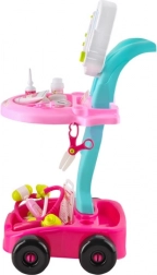 Lekki, dwupoziomowy wózek z uchwytem i kółkami pozwala dzieciom łatwo przewozić narzędzia po „przychodni”. Haczyki i wkładane wanienki utrzymują wszystko przejrzyście na miejscu.