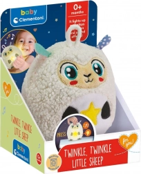 Interaktywna pluszowa owieczka Twinkle Twinkle od CLEMENTONI BABY została zaprojektowana z myślą o najmłodszych. Łączy kojące melodie i delikatne efekty świetlne, które pomagają dziecku się wyciszyć, a jednocześnie stymulują wzrok i słuch. Przyjemna, pluszowa powierzchnia zachęca do przytulania i wspiera doznania sensoryczne.