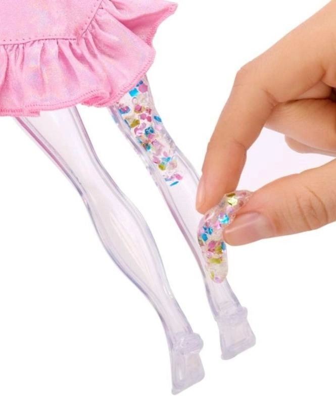 - Interaktywna przemiana – wkładaj slime do przezroczystych nóg i zmieniaj wygląd lalki.