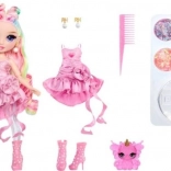Odkryj magiczną zabawę z lalką Rainbow High Bella w różu! W zestawie przezroczysty slime oraz 4 rodzaje brokatu, które możesz mieszać i tworzyć niepowtarzalne efekty. Umieść slime w przezroczystych nogach lalki i obserwuj zachwycającą przemianę. Zestaw uzupełnia stylowy strój, buty, kolczyki oraz magiczny pupil – dla nieskończonego kreatywnego ubierania i stylizacji.