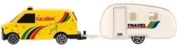 Auto z mini przyczepą jest dopracowane w detalach, aby pobudzać zainteresowanie podróżami i przygodą.