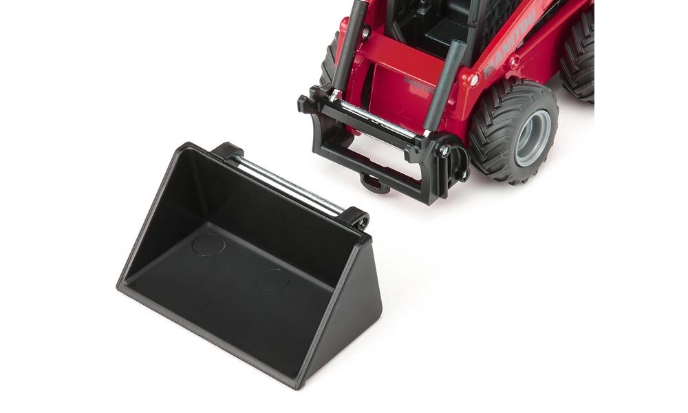 Dzięki gumowym oponom z wyrazistym, rolniczym bieżnikiem model radzi sobie także na nierównym podłożu. Kompatybilność z wymiennym systemem SIKU umożliwia szybkie zmienianie osprzętu i rozbudowę scenariuszy zabawy – od załadunku materiałów sypkich po manipulację paletami.