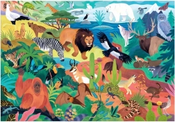 Zanurz się w świecie zwierząt – od majestatycznych lwów po figlarne kangury. Ułożone puzzle o wymiarach 58 × 41 cm przynoszą dzieciom radość z odkrywania, a jednocześnie wspierają koncentrację, cierpliwość i wyobraźnię przestrzenną. Praktyczne pudełko z ilustracją gotowego motywu jest idealne do bezpiecznego przechowywania wszystkich elementów.