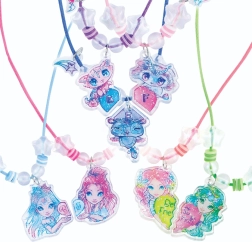 Twórz biżuterię, która opowie historię waszej przyjaźni. Łącz 98 różnych koralików, dodawaj samoprzylepne kamyczki dla dodatkowego blasku i bezpiecznie wszystko połącz kółeczkami montażowymi. Zestaw wspiera kreatywność, motorykę małą i poczucie estetyki.