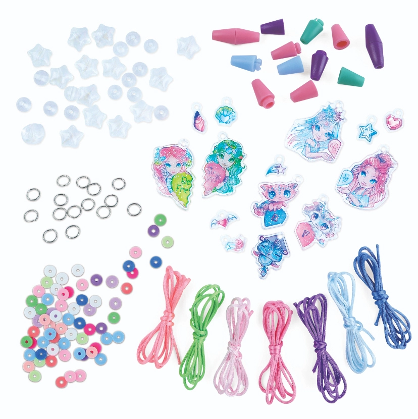 Kreatywny zestaw NEBULOUS STARS dla małych twórczyń przyjaźni zawiera wszystko, czego potrzeba do tworzenia oryginalnej biżuterii. Wspólnie z koleżankami stwórzcie wyjątkowe naszyjniki z błyszczącymi akrylowymi zawieszkami, kolorowymi koralikami i jedwabnymi sznureczkami. Opakowanie zawiera bogaty zestaw materiałów na nawet 7 naszyjników oraz łatwą, kolorową instrukcję na szybki start.