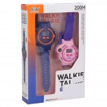 Praktyczne funkcje obejmują jasną latarkę LED (przełącznik na dole prawego boku) do świecenia w ciemności, przełącznik ON/OFF (prawy bok u góry) do szybkiego włączania i wyłączania oraz dwa przednie przyciski do ustawiania godziny. Przycisk na lewym boku aktywuje krótkofalówkę – komunikacja jest prosta i pełna zabawy.