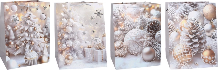 Stylowa świąteczna torebka prezentowa w rozmiarze S o wymiarach 18 × 24 × 8,5 cm jest idealna na mniejsze prezenty. Oferuje 4 atrakcyjne motywy, solidne wykonanie i elegancki wygląd dla pięknego, świątecznego pakowania.
