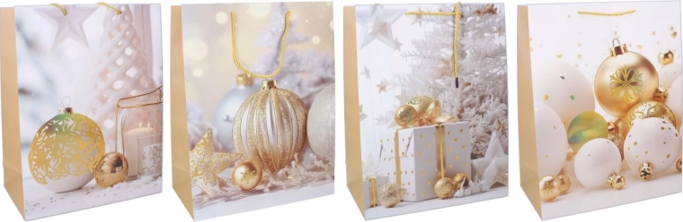 Stylowa świąteczna torebka prezentowa w rozmiarze S ucieszy każdego obdarowanego. Dzięki wymiarom 18 × 23 × 10 cm jest idealna na mniejsze podarunki, kosmetyki czy drobne dekoracje. Oferuje wysoką jakość wykonania, mocny uchwyt dla wygodnego noszenia oraz świąteczny design w 4 wariantach.