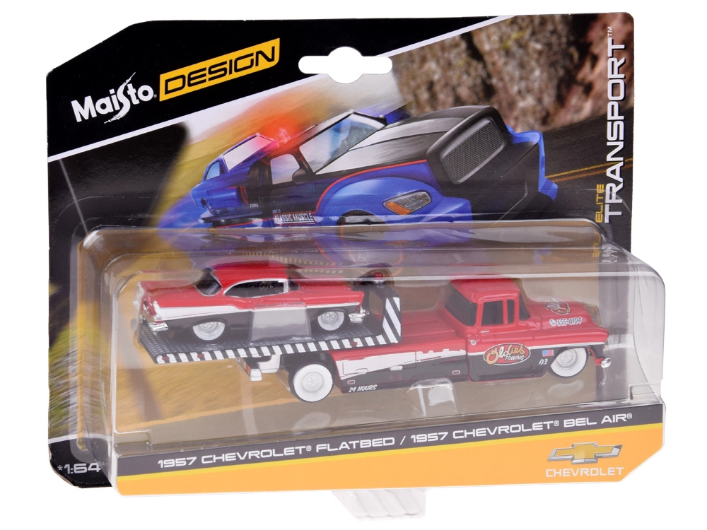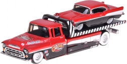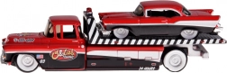 Laweta CHEVROLET Flatbed 1957 wyposażona jest w szczegółową rampę transportową, która wiernie odwzorowuje rzeczywisty przewóz klasycznego samochodu.
