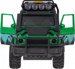Pojazd terenowy ma otwierane przednie drzwi oraz gumowe, swobodnie obracające się koła zapewniające płynny ruch po każdej powierzchni.