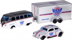 Metalowe nadwozia, precyzyjne linie i wysokiej jakości nadruk zapewniają realistyczny wygląd klasycznych modeli VOLKSWAGEN – do zabawy i ekspozycji.