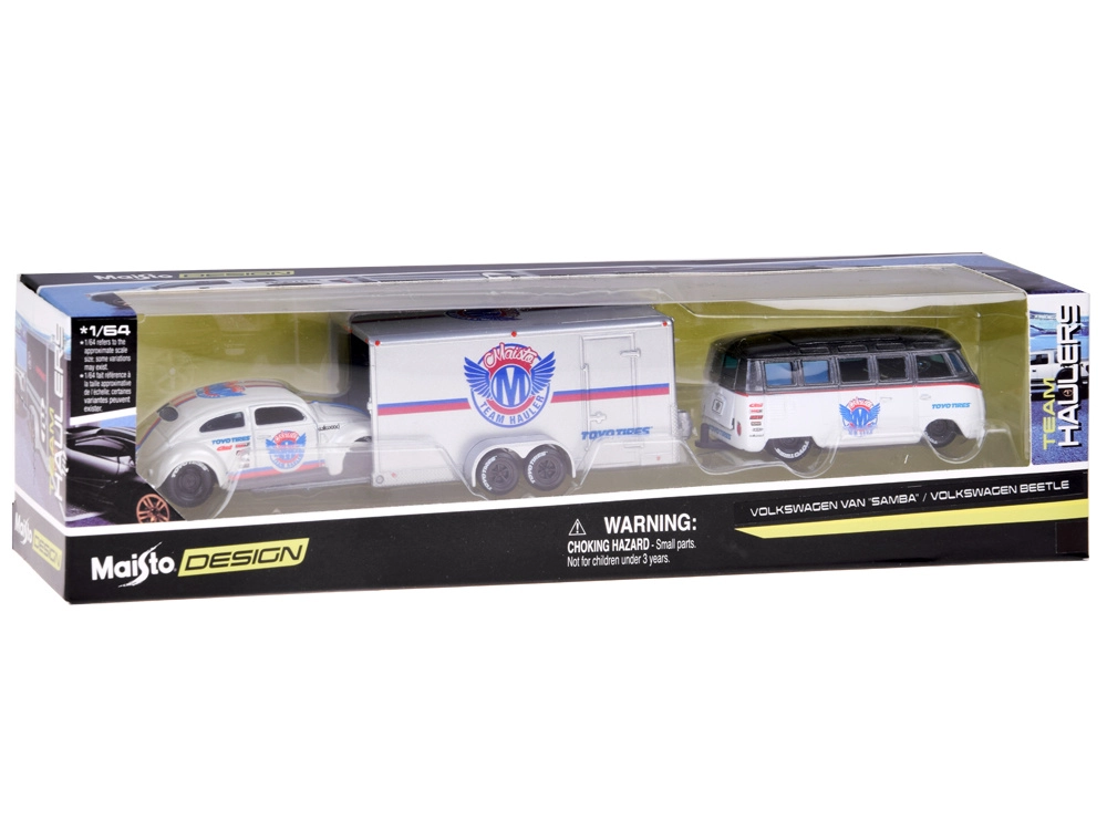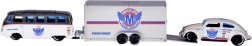Volkswagen Van Samba wyposażono w hak holowniczy do podpięcia przyczepy; hak można w razie potrzeby zdemontować, a przyczepę odpiąć bez odkręcania. Cały zestaw jest idealny dla miłośników klasycznej motoryzacji, kolekcjonerów skali 1:64 oraz dzieci, które kochają kreatywną zabawę.