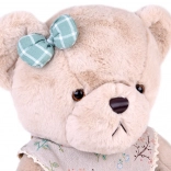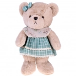 Uroczy pluszowy miś Zosia o wysokości 58 cm ucieszy dzieci i dorosłych. Ma miękkie beżowe, milutkie futerko, zieloną, vintage sukienkę z koronką oraz pasującą kokardkę. Sukienkę można łatwo zdjąć do czyszczenia i zabawy. Bezpieczne haftowane detale twarzy czynią go idealną przytulanką i dekoracją.