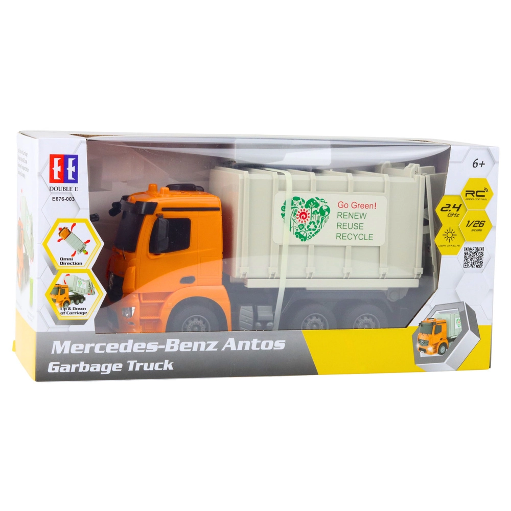 Licencowana RC śmieciarka MERCEDES-BENZ ANTOS w skali 1:26 zapewnia realistyczną jazdę, funkcjonalne podnoszenie kosza i wysypywanie kontenera. Dzięki sterowaniu 2,4 GHz prowadzenie jest płynne i bez zakłóceń, a solidna konstrukcja z ABS gwarantuje trwałość. Świetna zabawka dla dzieci od 6 lat, wspierająca kreatywną zabawę i naukę recyklingu.