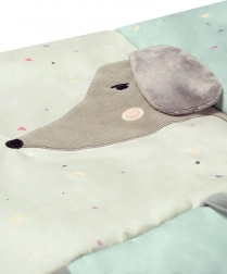 - lusterko w baloniku, piszczałka (nosek misia), szeleszczący element (ucho pieska), gryzak, miękkie pluszowe aplikacje