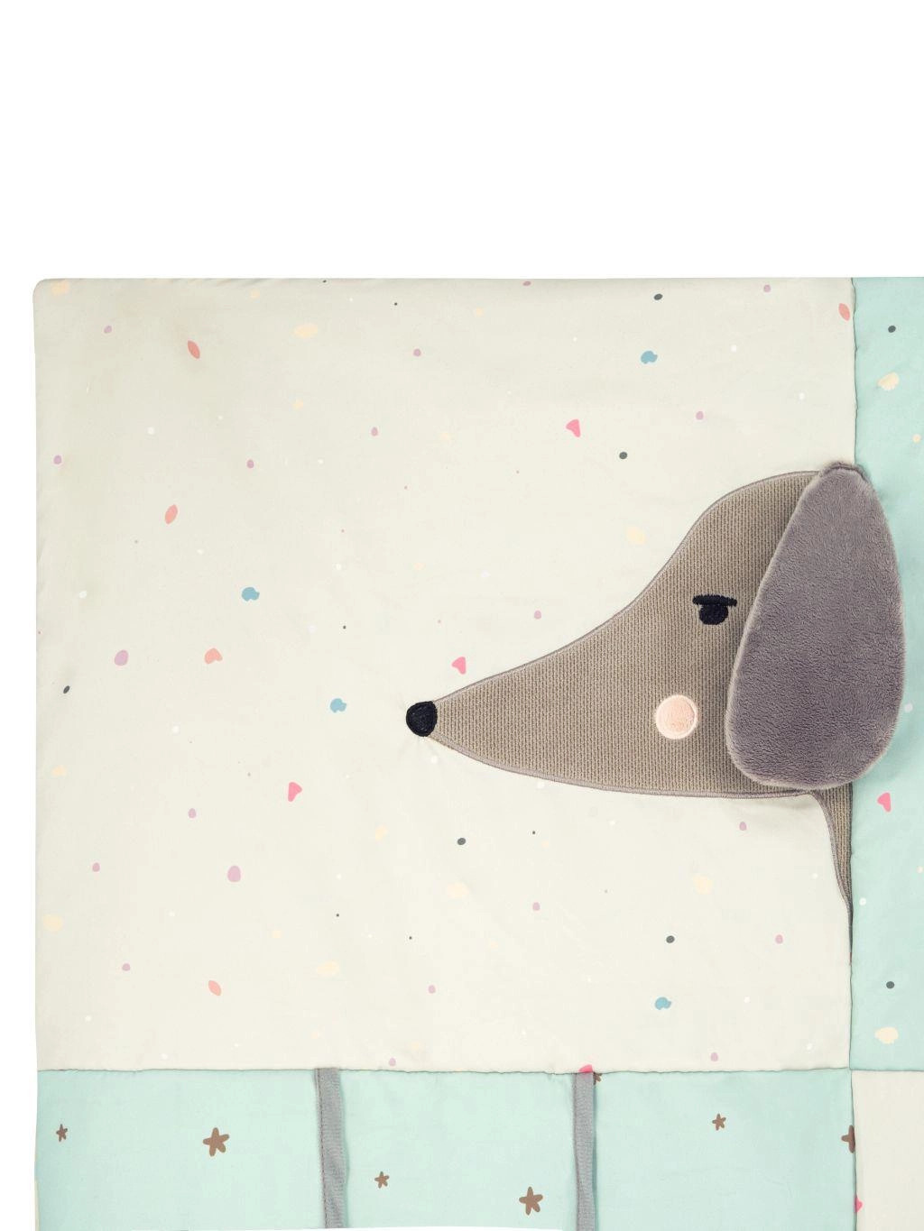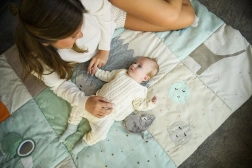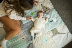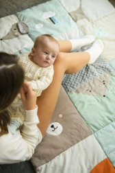 Przestronna, pikowana mata tworzy bezpieczne i wygodne miejsce do leżenia na brzuszku, raczkowania i relaksu – w domu i na zewnątrz.