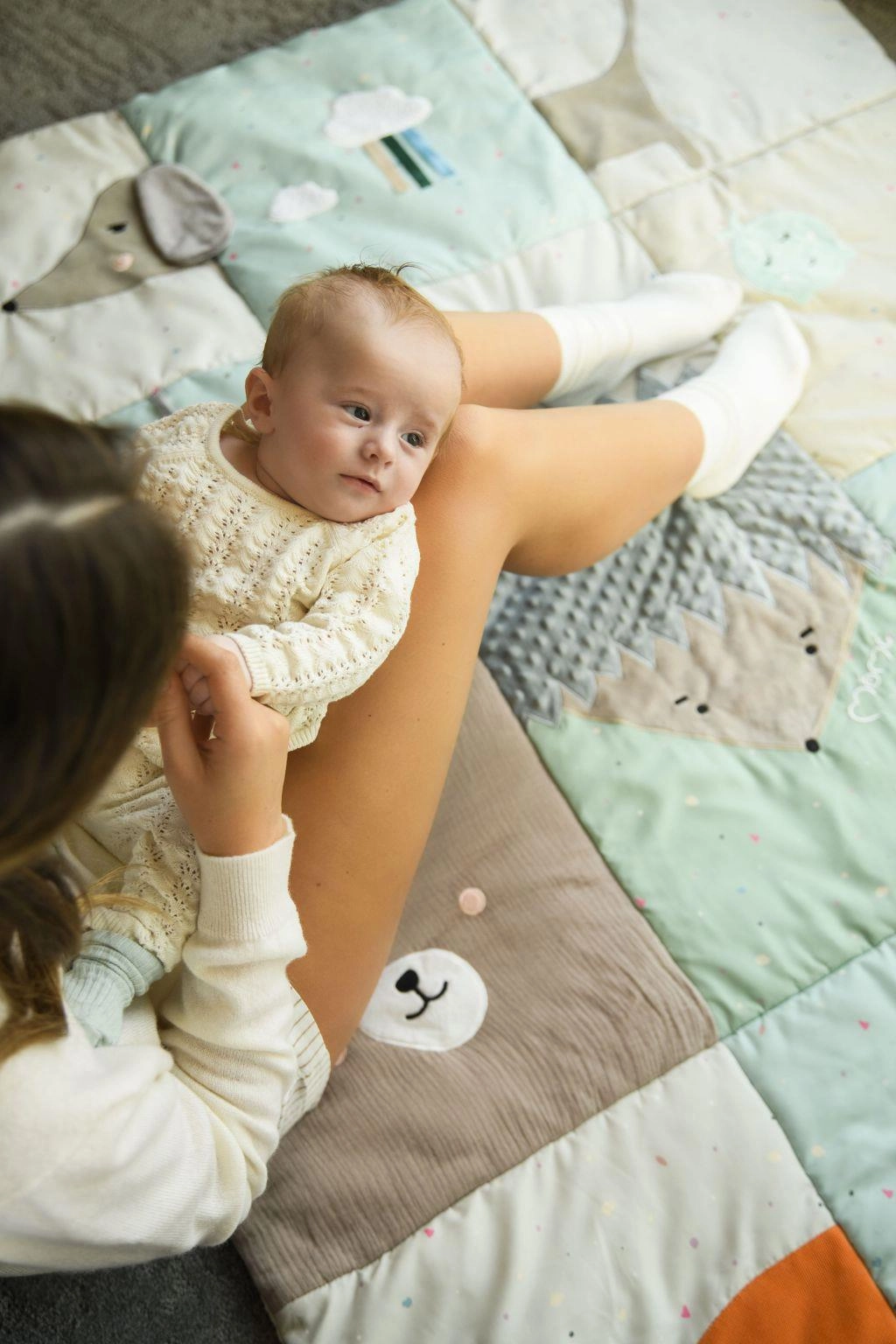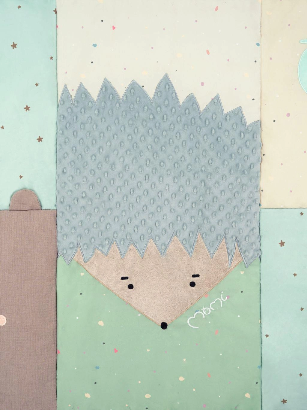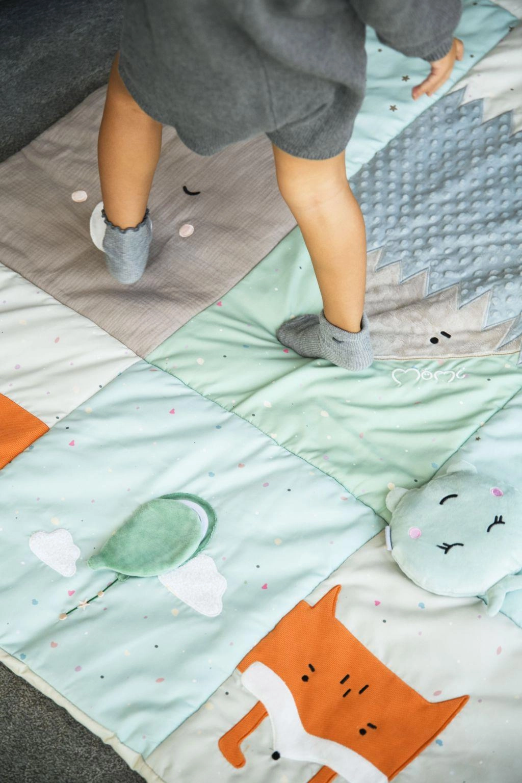 Mata do zabawy MoMi VOLPI została zaprojektowana tak, by rosnąć razem z Twoim dzieckiem – od pierwszego leżenia na brzuszku aż po samodzielną zabawę. Patchworkowy design z różnymi teksturami (minky, plusz, muślin, bouclé) zapewnia bogatą stymulację sensoryczną i przyjemny komfort. Dzięki dużemu rozmiarowi 120 × 160 cm stworzysz bezpieczną i miękką strefę do zabawy, odpoczynku i odkrywania.