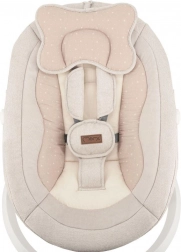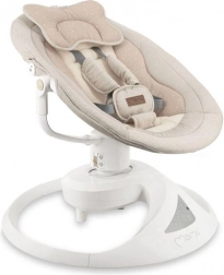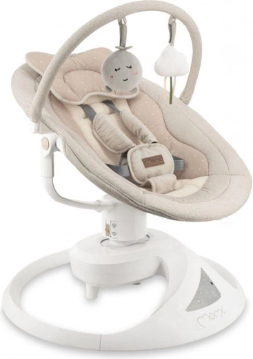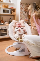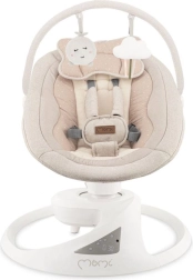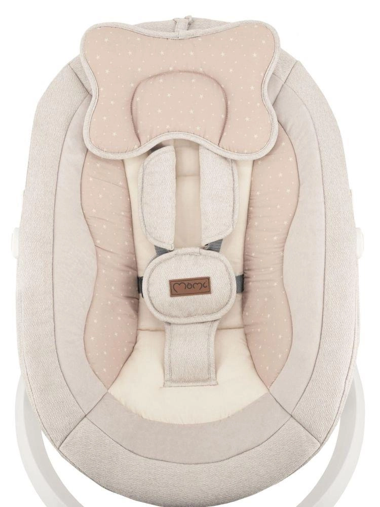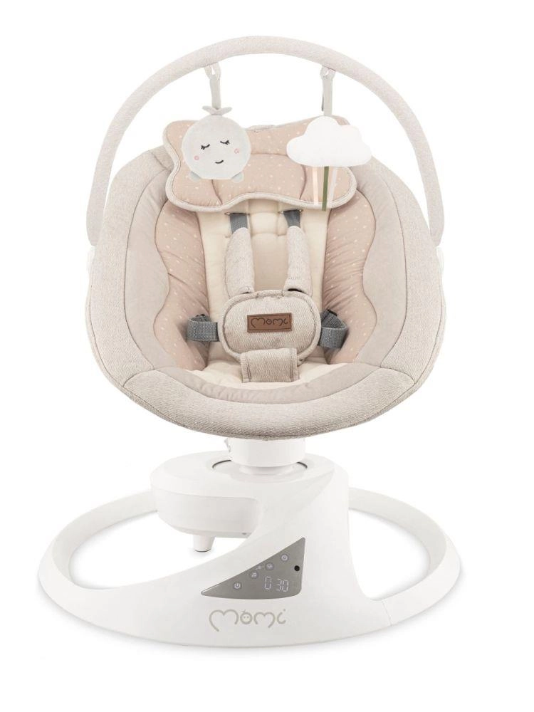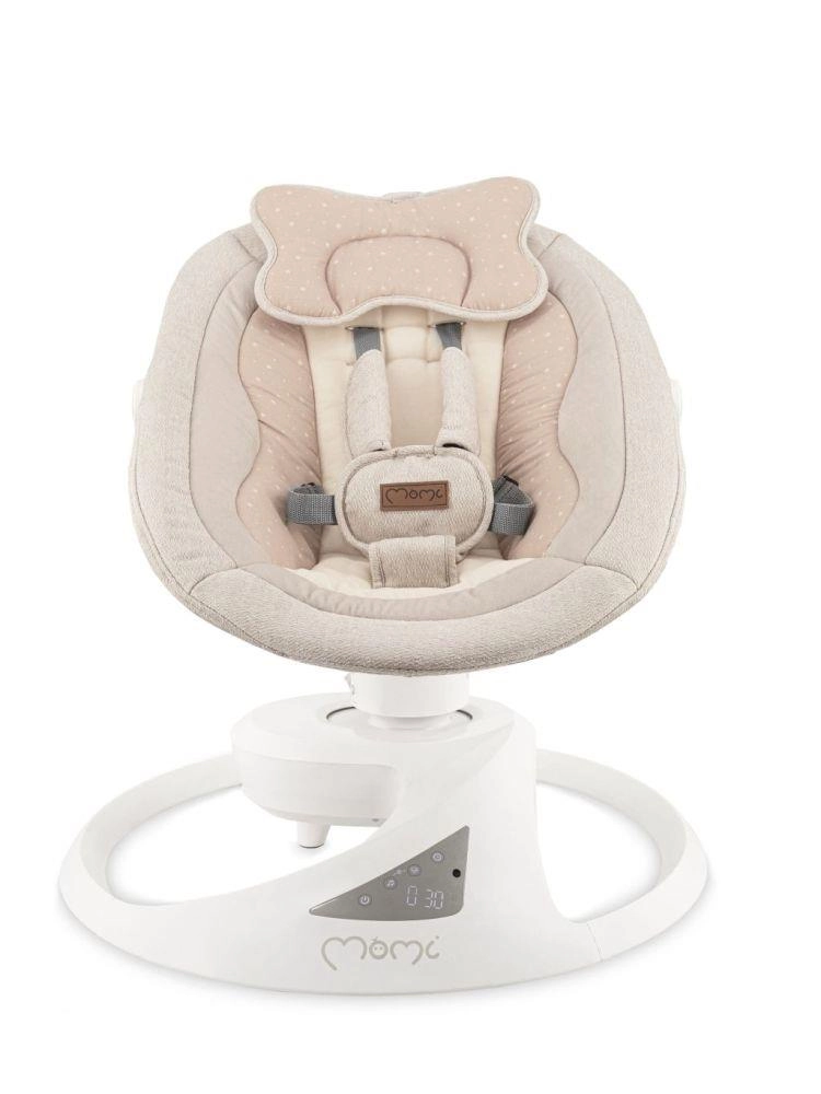 Preamiowa elektryczna huśtawka MoMi PEARL oferuje 2 tryby kołysania (z boku na bok oraz delikatny ruch obrotowy), obracane siedzisko 360°, 5 prędkości, timer oraz Bluetooth do odtwarzania muzyki. Wygodne, bezpieczne i stylowe rozwiązanie do uspokajania i zabawy maluszka od narodzin do 9 kg.