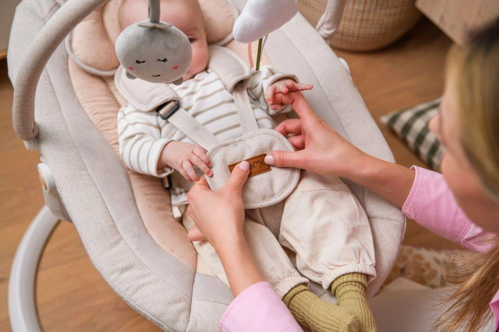 Huśtawka MoMi PEARL to nowoczesny pomocnik dla rodziców, łączący kojący ruch, muzykę i wygodę w jednym. Dzięki dwóm trybom kołysania i obracanemu siedzisku 360° łatwo dopasujesz pozycję i intensywność kołysania do potrzeb maluszka. Miękka wyściółka, 5‑punktowe pasy bezpieczeństwa oraz regulowane oparcie zapewniają bezpieczeństwo i komfort w codziennym użytkowaniu.