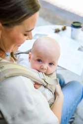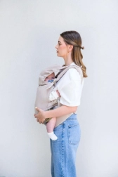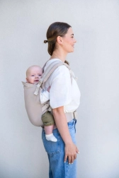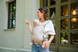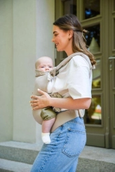 Wygodne i bezpieczne noszenie na co dzień: ergonomiczne nosidło MoMi COLLET w kolorze beżowym wspiera prawidłową pozycję pleców i bioder, oferuje 2 pozycje noszenia (z przodu i na plecach), a dzięki szerokiemu pasowi biodrowemu i wyściełanym szelkom naramiennym równomiernie rozkłada ciężar, zapewniając komfort zarówno rodzicom, jak i dziecku. W zestawie odpinany kaptur, 6‑punktowa regulacja oraz oddychająca, hipoalergiczna tkanina dla całodziennej wygody.
