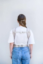 Szeroki pas biodrowy i miękko wyściełane szelki naramienne równomiernie rozkładają ciężar dziecka. Osłony klamer zapobiegają uciskowi i otarciom.