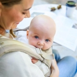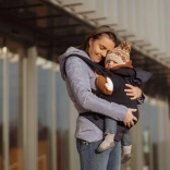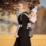 Noś dziecko z przodu od ok. 3 miesięcy, a na plecach mniej więcej od 12 miesięcy. Odpinany kaptur, kieszonka oraz gumki na końcach pasów ułatwiają codzienne użytkowanie.