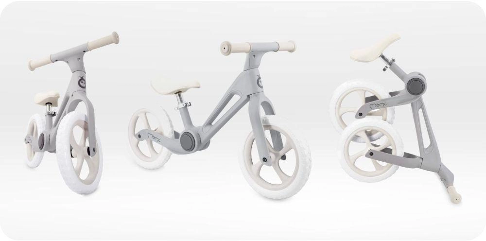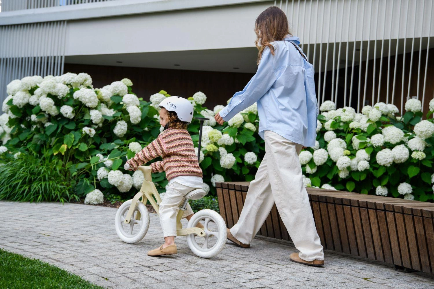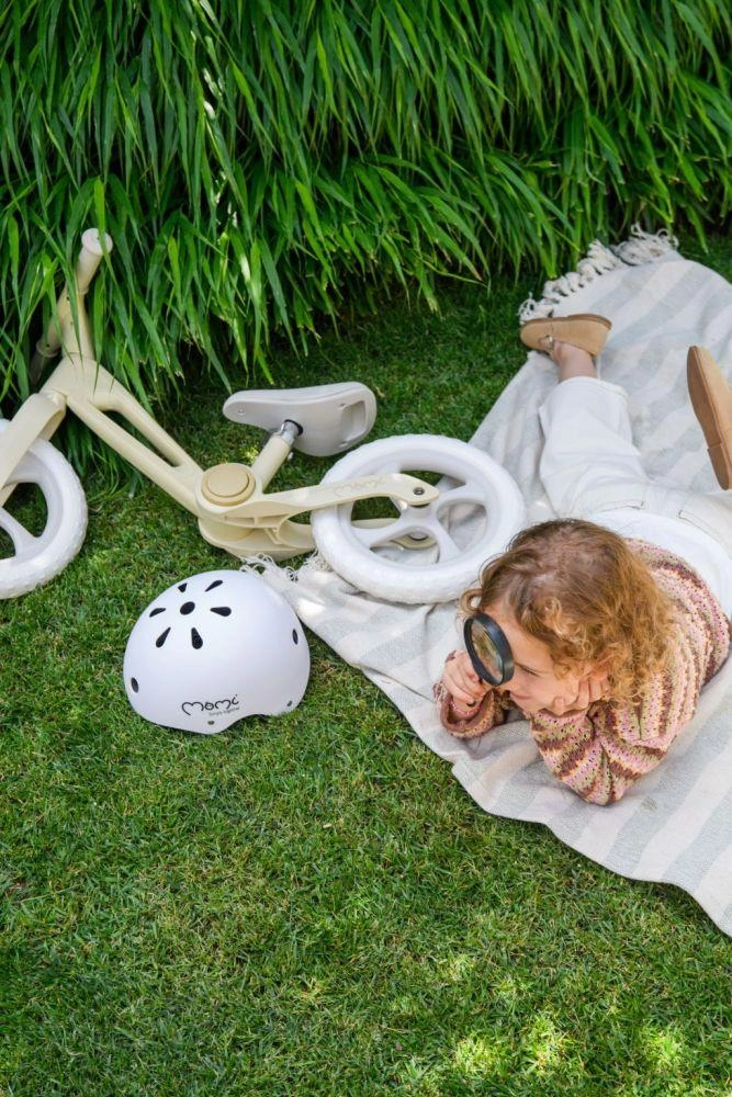 MoMi Noru przenosi pierwsze kroki na rowerze na nowy poziom. Unikalna składana rama na przycisk ułatwia transport i przechowywanie – od auta po dom bez kłopotu. Lekka konstrukcja z wytrzymałego nylonu waży tylko 3 kg, więc rodzice z łatwością przeniosą ją jedną ręką.