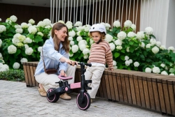 Koła PU tłumią nierówności i nie hałasują, 2 wysokości siedziska oraz pewne prowadzenie pomagają dzieciom jeździć z pewnością i bezpiecznie.