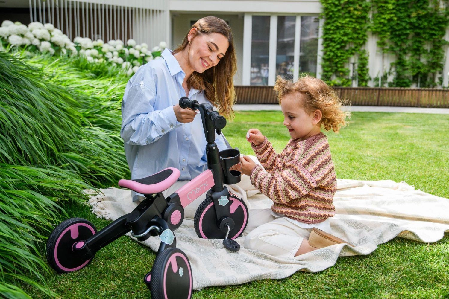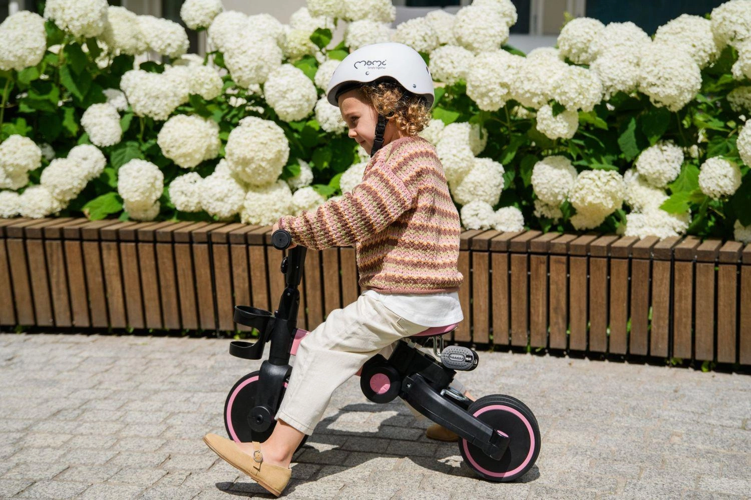 MoMi FILO 3w1 to przemyślany pojazd dziecięcy, który dopasowuje się do wieku i umiejętności maluchów od 18 miesięcy. W mgnieniu oka zmienisz go z jeździka w trójkołowiec z pedałami albo w klasyczny rowerek biegowy – wszystko bez użycia narzędzi. Dzięki składanemu ramowi i kierownicy łatwo się przenosi i przechowuje, dlatego jest doskonały na wycieczki i do małych mieszkań.