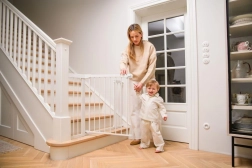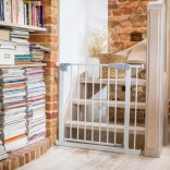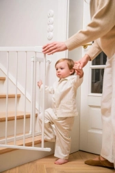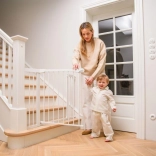 Podwójny mechanizm zabezpieczający uniemożliwia dzieciom otwarcie. Furtka otwiera się w obu kierunkach i pozostaje otwarta pod kątem 90° dla swobodnego przejścia.