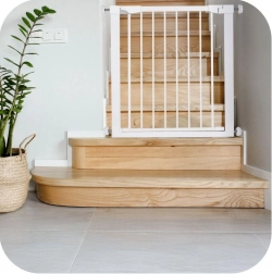 MoMi PAXI Plus to solidna metalowa barierka zaprojektowana do bezpiecznego oddzielenia schodów, kuchni i innych stref ryzyka. Dzięki montażowi ciśnieniowemu zainstalujesz ją szybko i bez uszkadzania ościeżnic czy ścian. Wytrzymała konstrukcja z gładką powierzchnią bez ostrych krawędzi zapewnia bezpieczeństwo i codzienny komfort użytkowania.