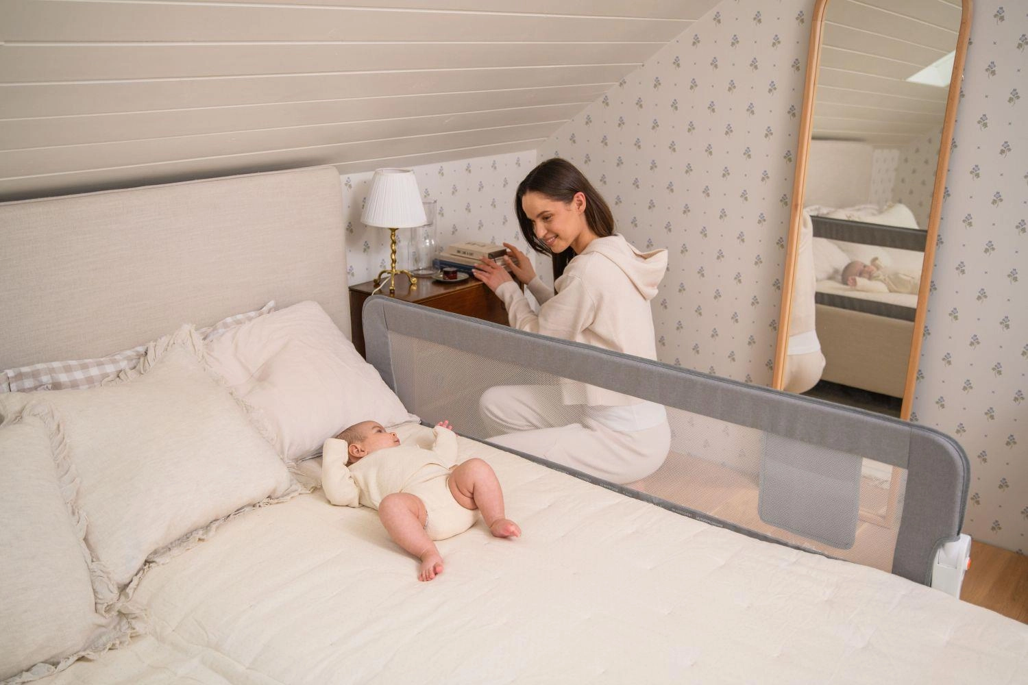 Montaż jest prosty i elastyczny: albo pod materac z zabezpieczeniem paskami, albo na stałe poprzez przykręcenie do konstrukcji łóżka. Praktyczna kieszeń z boku pomieści niezbędne drobiazgi, które chcesz mieć zawsze pod ręką. Barierka jest ponadto testowana w międzynarodowych laboratoriach, aby spełniać wysokie wymagania w zakresie jakości i bezpieczeństwa.