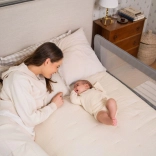 Barierka MoMi LEXI XL PLUS to niezawodna pomoc dla rodziców i dzieci – sprawdzi się zarówno przy wspólnym spaniu z rodzicami, jak i w samodzielnym łóżku dziecięcym. Konstrukcja z miękkim wykończeniem oraz duży panel z przewiewnej siateczki zapewniają bezpieczeństwo i doskonałą widoczność dziecka. Mechanizm blokady bezpieczeństwa zapobiega niepożądanemu złożeniu podczas snu.
