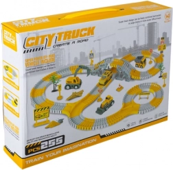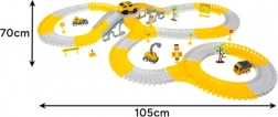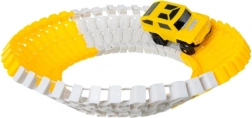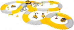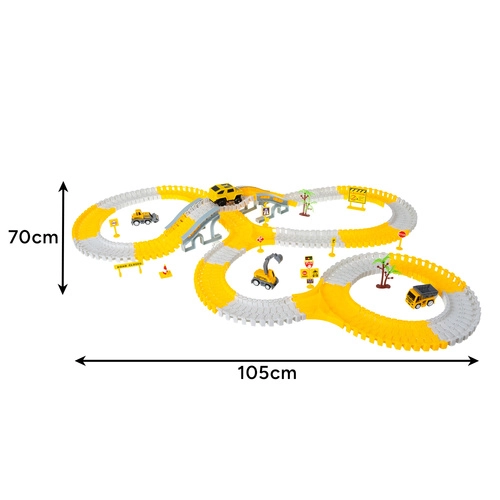 Stwórz własny tor o tematyce budowlanej – dzięki elastycznym, zatrzaskowym elementom ułożysz proste odcinki, zakręty, pętle i most. Dzieci mogą bez końca zmieniać konfiguracje, testować nowe trasy i uzupełniać je znakami, szlabanami oraz drzewami. Żywe kolory, funkcjonalne dodatki i samochodzik na baterie gwarantują dynamiczną i wciągającą zabawę.