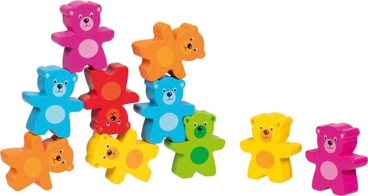Urocze kolorowe misie oferują mnóstwo możliwości, jak je układać i równoważyć w szalonych kompozycjach. Celem jest utrzymać równowagę i zbudować jak najwyższe stabilne piramidy – potrzeba pewnej ręki, dobrej taktyki i odrobiny kreatywności.
