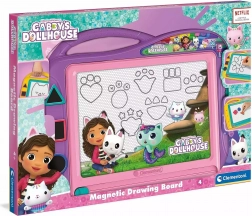 W zestawie są magnetyczny pisak i 3 stempelki (koło, trójkąt, kwadrat), które wspierają naukę kształtów i rozwój motoryki małej. Lubiany motyw Domku Gabi dodatkowo zachęca do zabaw w odgrywanie ról i rozwija wyobraźnię.