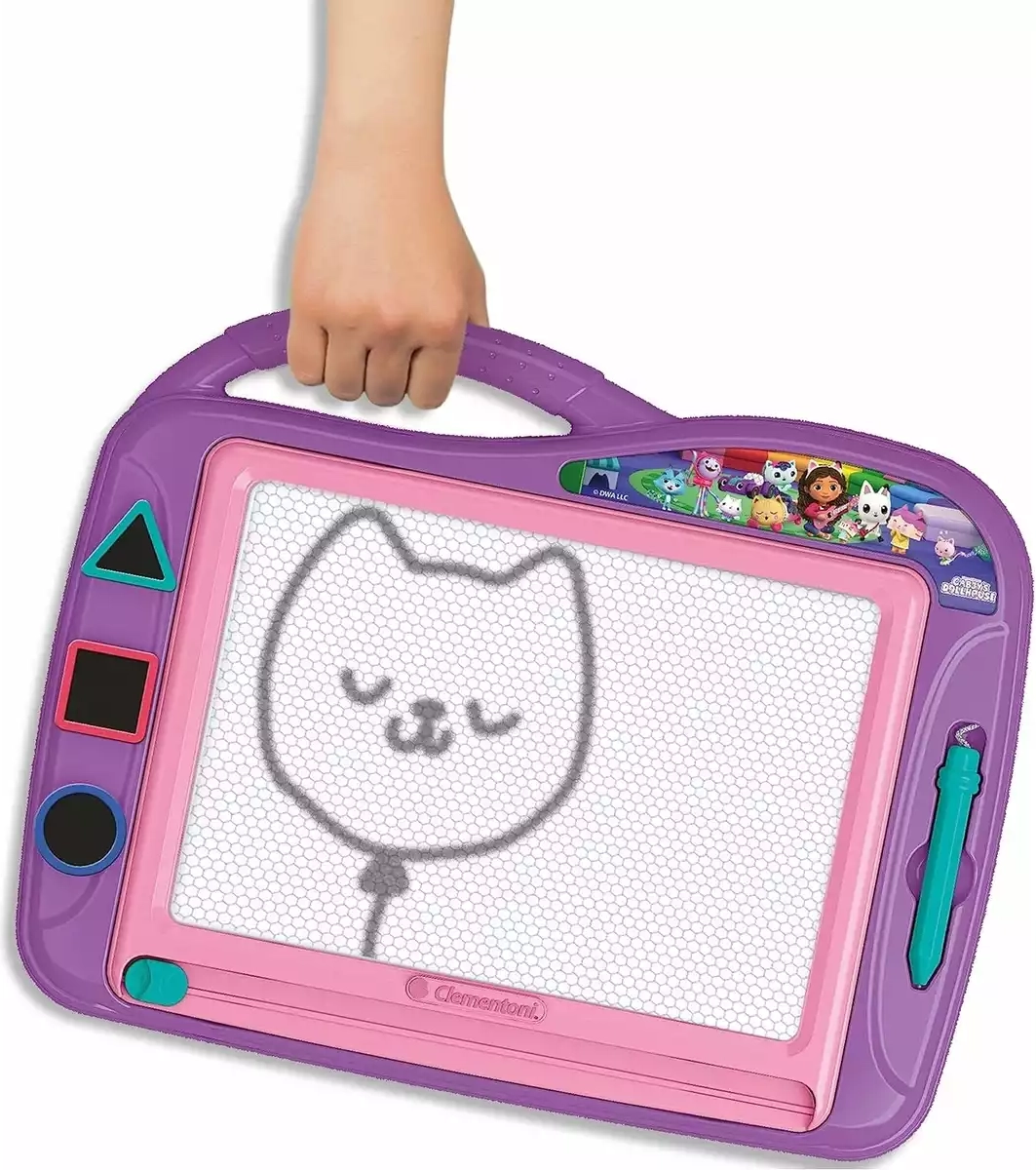 Odkryj kreatywną zabawę bez bałaganu z magnetyczną tablicą CLEMENTONI z motywem bajki Domek Gabi. Dzieci mogą rysować, stemplować i jednym ruchem wszystko zmazać, więc zabawa nigdy się nie kończy. Tablica ma praktyczny uchwyt, 3 magnetyczne stempelki oraz przesuwną gumkę do łatwego wymazywania – idealna w domu i w podróży.