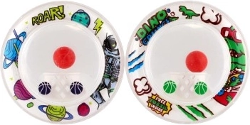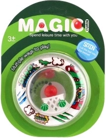 Średnica 8 cm czyni z niej idealną rozrywkę do kieszeni – do auta, do poczekalni i na wycieczki. Gra wykonana jest z lekkiego plastiku i dostarczana na karcie 12 × 16 cm w różnych kolorowych i tematycznych motywach (np. sportowych lub z dinozaurami), które przyciągają uwagę dzieci.