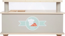 Ta wysokiej jakości drewniana pizzeria marki small foot to świetne uzupełnienie każdej dziecięcej kuchni. Piec z obrotowym pokrętłem, które podczas obracania klika, służy jednocześnie jako spiżarnia i lada sprzedażowa. Dzieci mogą piec, kroić i serwować pizzę na drewnianej łopacie, a dzięki bogatym akcesoriom wcielą się w kucharza i sprzedawcę.
