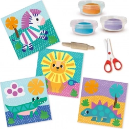 Ten kreatywny zestaw oferuje zabawną drogę do rozwoju umiejętności. Dzieci rozwałkowują masę wałeczkiem, wycinają różne kształty i wzory, a następnie przyklejają lub układają je na dołączonych kartach z szablonami. Dzięki bezpiecznym nożyczkom i wielokrotnie używanym laminowanym kartom aktywność jest prosta, czysta i idealna do powtarzalnej zabawy.