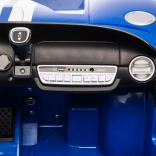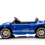 Sportowy elektryczny samochodzik FORD GT w niebieskim kolorze zachwyci dzieci realistycznym wyglądem, mocnym napędem 4x100 W i akumulatorem 24 V / 7 Ah. Oferuje zdalne sterowanie 2,4 GHz z awaryjnym przyciskiem Stop, miękkie koła EVA, światła LED, dwa siedzenia z ekoskóry z pasami oraz rozbudowany panel audio (FM, MP3, Bluetooth, USB).