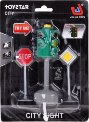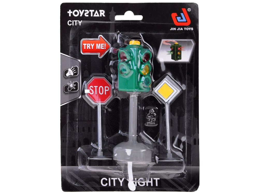 świetlna zabawka–semafor z dźwiękiem i 2 znakami drogowymi