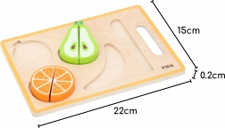 Każdy owoc jest podzielony na segmenty połączone rzepem, który podczas krojenia daje autentyczne wrażenie i dźwięk. Świetne do ćwiczenia koordynacji ręka–oko.